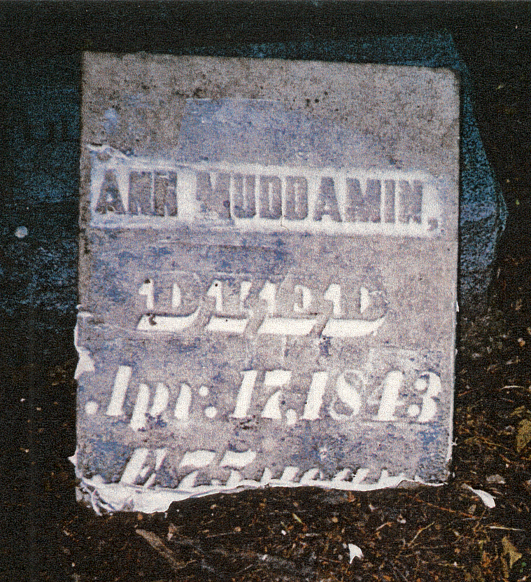 Ann Muddamin Ann Muddamin born in 1767 or 1768 [estimated from age at death] died April 17, 1843 The epitaph reads: My home is in heaven, My rest is not here. Share this:Share Click to email a link to a friend (Opens in new window) Email Click to print (Opens in new window) Print Like Loading...