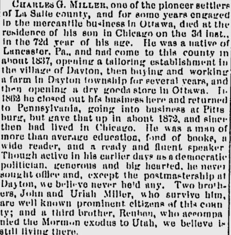 - Ottawa Free Trader, December 27, 1879, p. 8, c. 2.