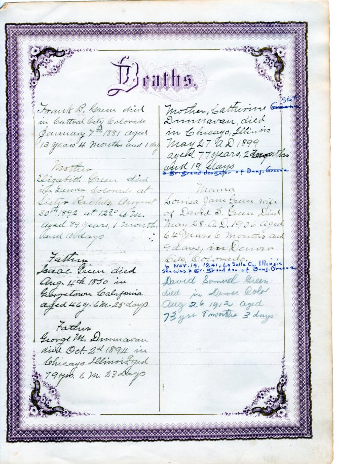 Granma Green, the oldest settler in the county, died Wednesday morning, at the age of 84 year. She was of a kind, benevolent disposition and was well beloved by her wide circle of relatives, friends and acquaintances by whom she will be greatly missed.1