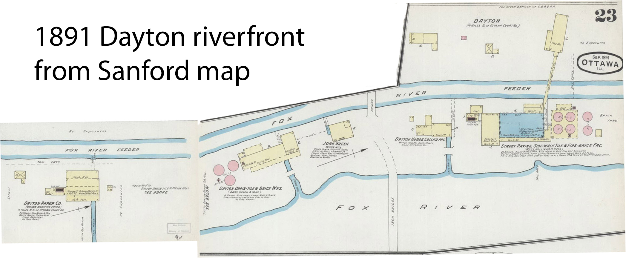 A representative of The Free Trader visited the village of Dayton last Tuesday, drawn thither by the report that considerable damage had been done in that place by the remarkable rise of the Fox river during the recent freshet. Very few of the readers of this paper are not acquainted with the history of the early days of this historic village, which had it not been for the legislative blunder of William Stadden, state senator from this district during the canal agitation, the place, instead of containing 300 inhabitants, as it does today, might be a manufacturing city with a population as large as that of this city.