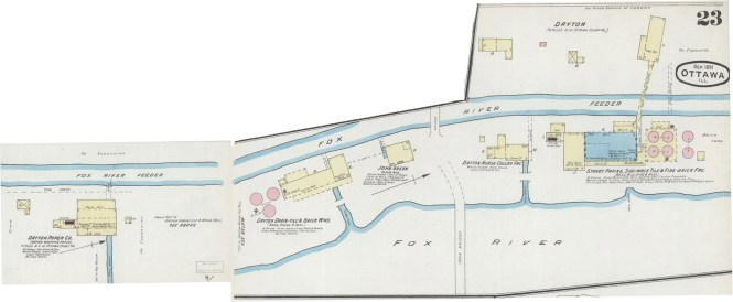 These works will put out paving brick, fire brick and drain tile, and will be run in a measure in connection with the Ottawa factory. The capacity will be 50,000 brick or 10 car loads, and 200 tons of clay will be used every day. The works have six kilns, with every facility for increasing the capacity if found practicable. The water-power used is of 200 hundred [sic] horse power. The firm will build a tramway across Fox river to its beds of fire clay, which are 7 foot veins, while the common clay will be taken from a 30 foot band just across the feeder from the works. Probably an inclined railway will be put in from the works to the “Q.” tracks to increase the shipping facilities.