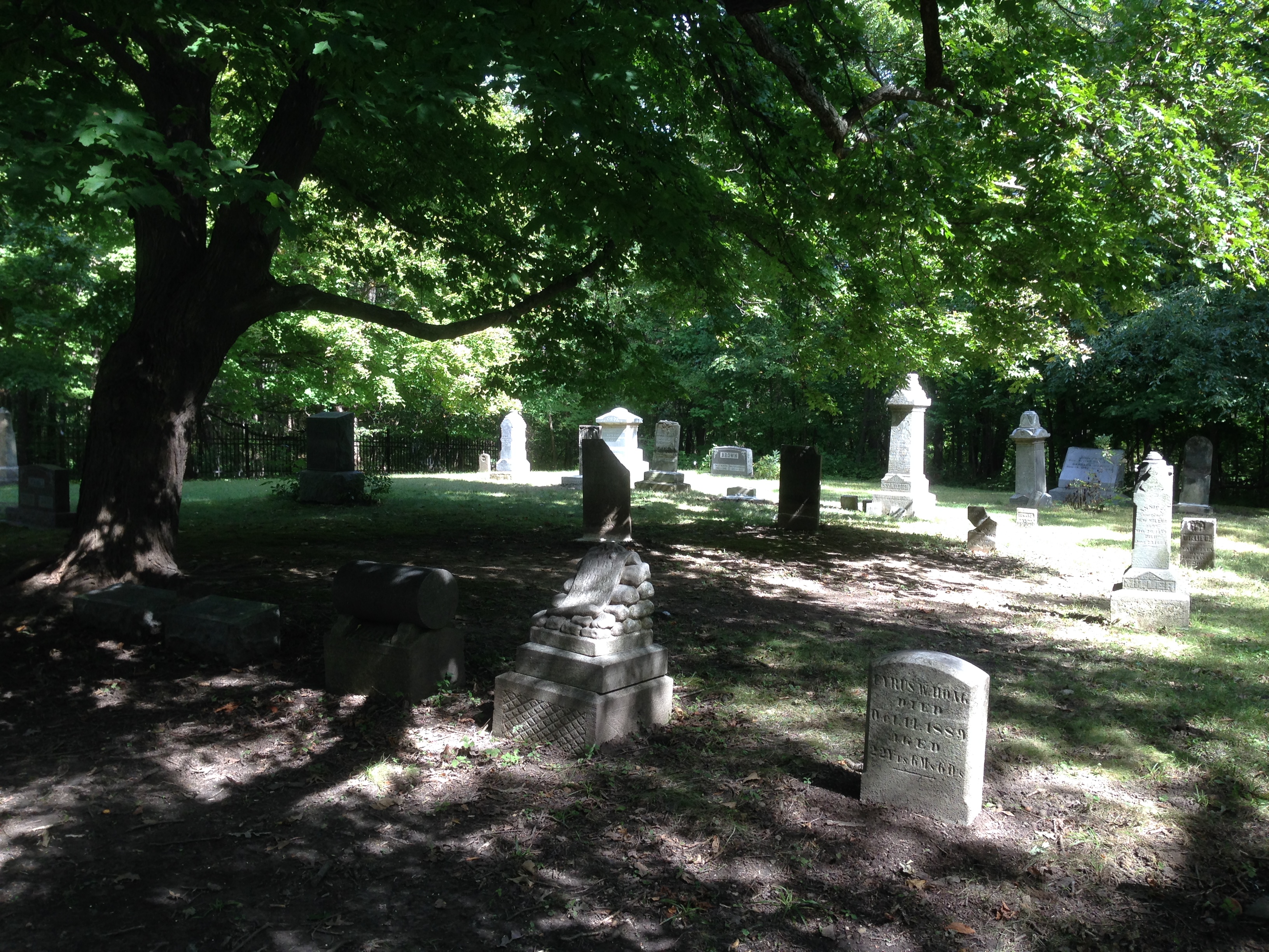 Mathias’s care for the burying ground did not end there. When he conveyed the land around it to his daughter in 1870 in return for her care of him for his lifetime, he stipulated that she must grant a right of way 2 rods wide from the Chicago road to the burying ground.