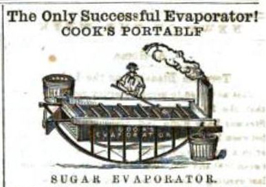 Sorghum comes from the sorghum plant and is not a true molasses, which is produced from sugar cane. Sorghum is a type of grass, the juice of which produces a naturally sweet syrup. Special milling equipment extracts the juice from the crushed stalks, and evaporating pans with heating units steam off the excess water, leaving the syrup. Cook’s evaporator was the primary rival of Gates & Co. and they would have looked much the same.
