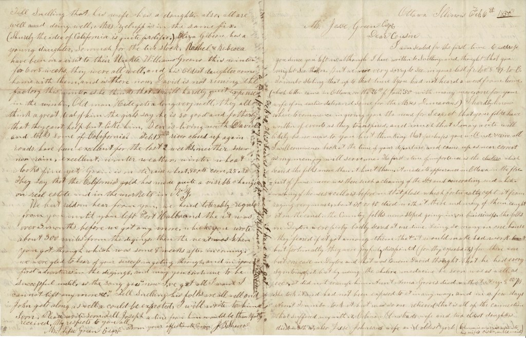 I will relate another experience that will show too much complication to admit of guess work. This all occurred during the winter of 1848 and ’49, and we were calculating to go to California in the Spring (and in the clairvoyant state) I sent him there to see what he would say about it. We did not get much information only that there seemed to be a great rush to that country, and they were getting plenty of gold”. It seemed to him in returning that he met our train going in the spring and his first exclamation on meeting it was “See that wagon, how they have fixed it up”. I inquired about the wagon and he said it was “George Dunavans wagon and that they had broken the coupling pole, and had it wound with ropes and chains, and Uncle Johnny is behind carrying some birds”. When he told this Father had no idea of going to California with us. The Company employed him to go to Missouri and buy oxen for the outfit and return home, but there being so much cholera on the River he preferred crossing the Plains, rather than risk getting the cholera on his return. Our company consisting of forty nine men with twenty wagons, left Ottawa April 2, 1849. Myself being elected captain of the Company, one day on the route a short distance East of Fort Kearney, my clairvoyant (Daniel Stadden) borrowed a horse from one of the company and rode ahead with me, when we were a mile ahead of the train we saw that they had stopped, and by the time we rode back to see what was the matter, here was George Dunavans wagon reach broken and wound with both ropes and chains and Father was behind carrying a sage hen he had shot. Stadden said to me “that is just how I saw it when I was mesmerised”.