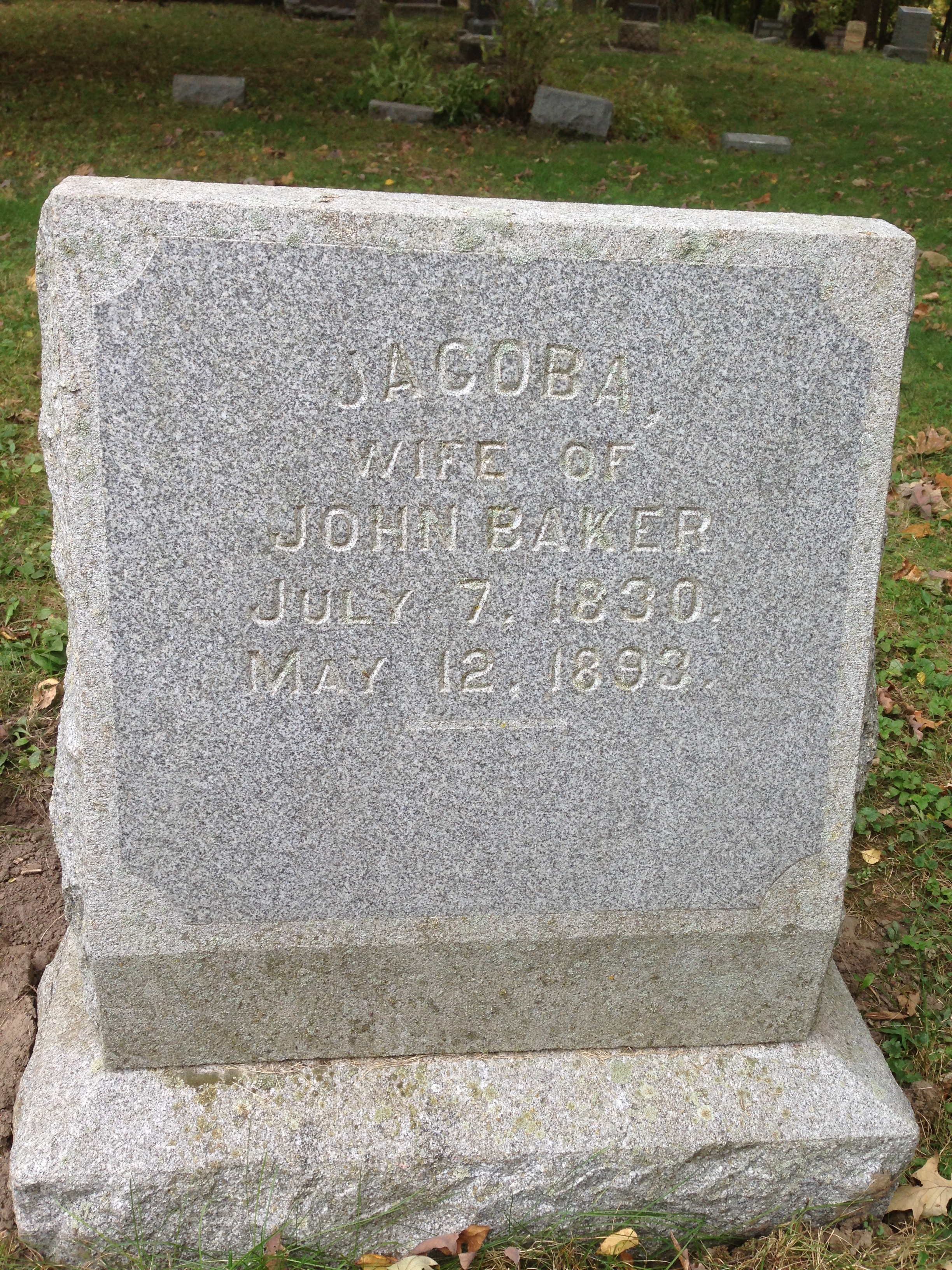 Jacoba Baker Jacoba Baker born July 7, 1830 died May 12, 1893 Share this:Share Email a link to a friend (Opens in new window) Email Print (Opens in new window) Print Like Loading...