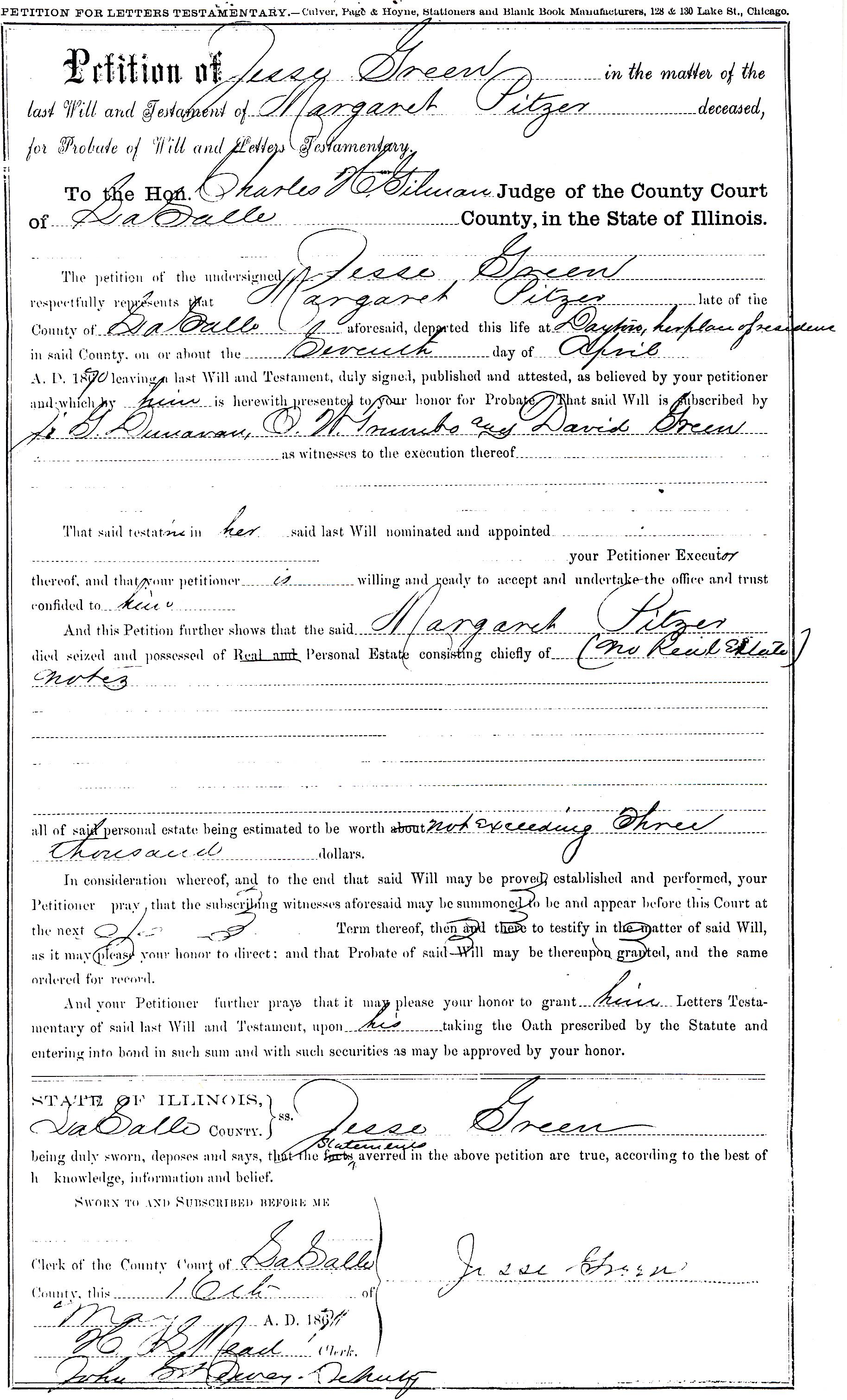 On the 7th inst., at the residence of O. W. Trumbo, in Dayton, La Salle county, Margaret Pitzer, wife of Anthony Pitzer, aged 66 years.1