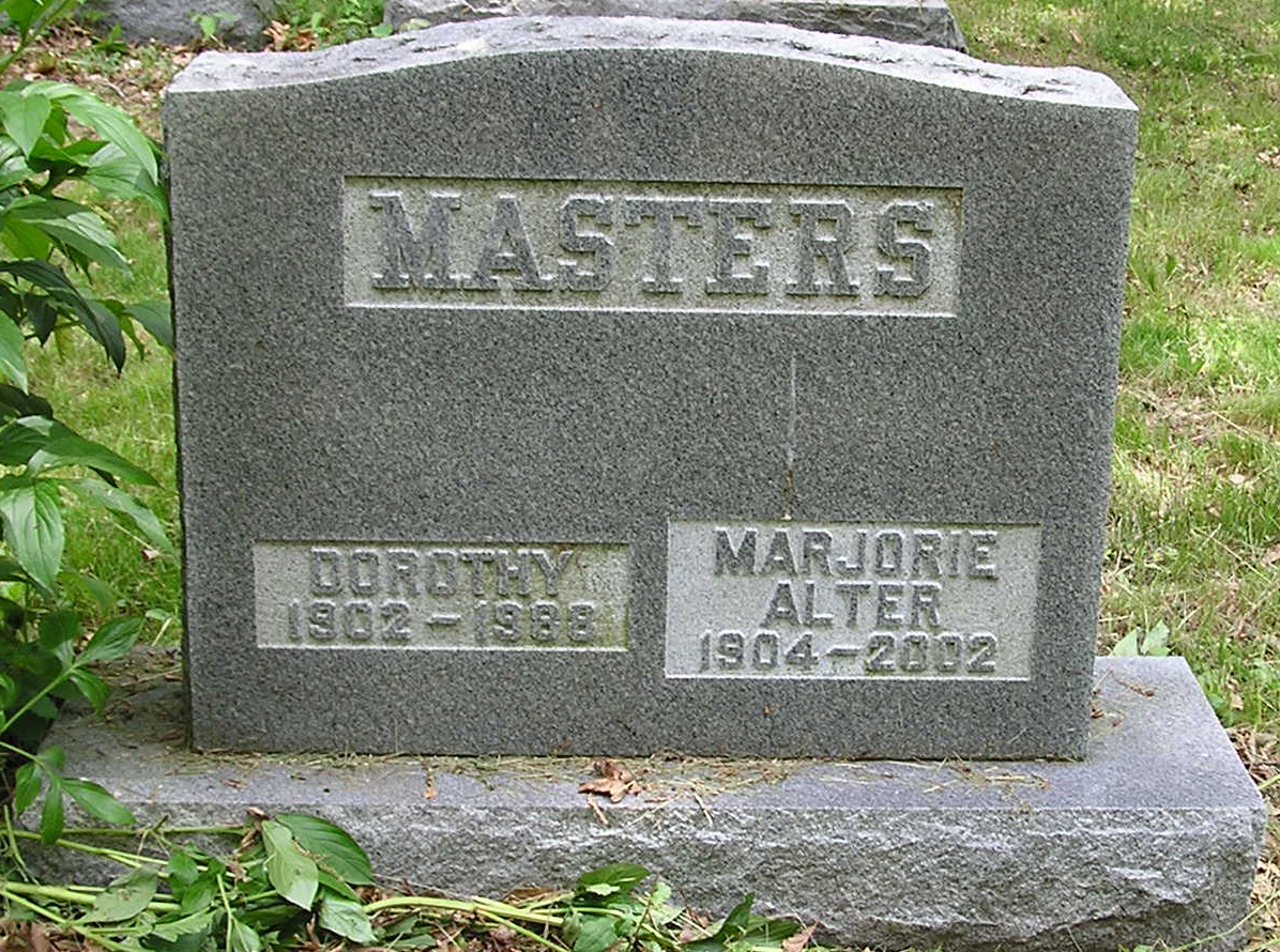 Marjorie (Masters) Alter Marjorie (Masters) Alter born November 14, 1904, in Minneapolis, Minnesota died August 1, 2002, in Kailua Kona, Hawaii Share this:Share Click to email a link to a friend (Opens in new window) Email Click to print (Opens in new window) Print Like Loading...